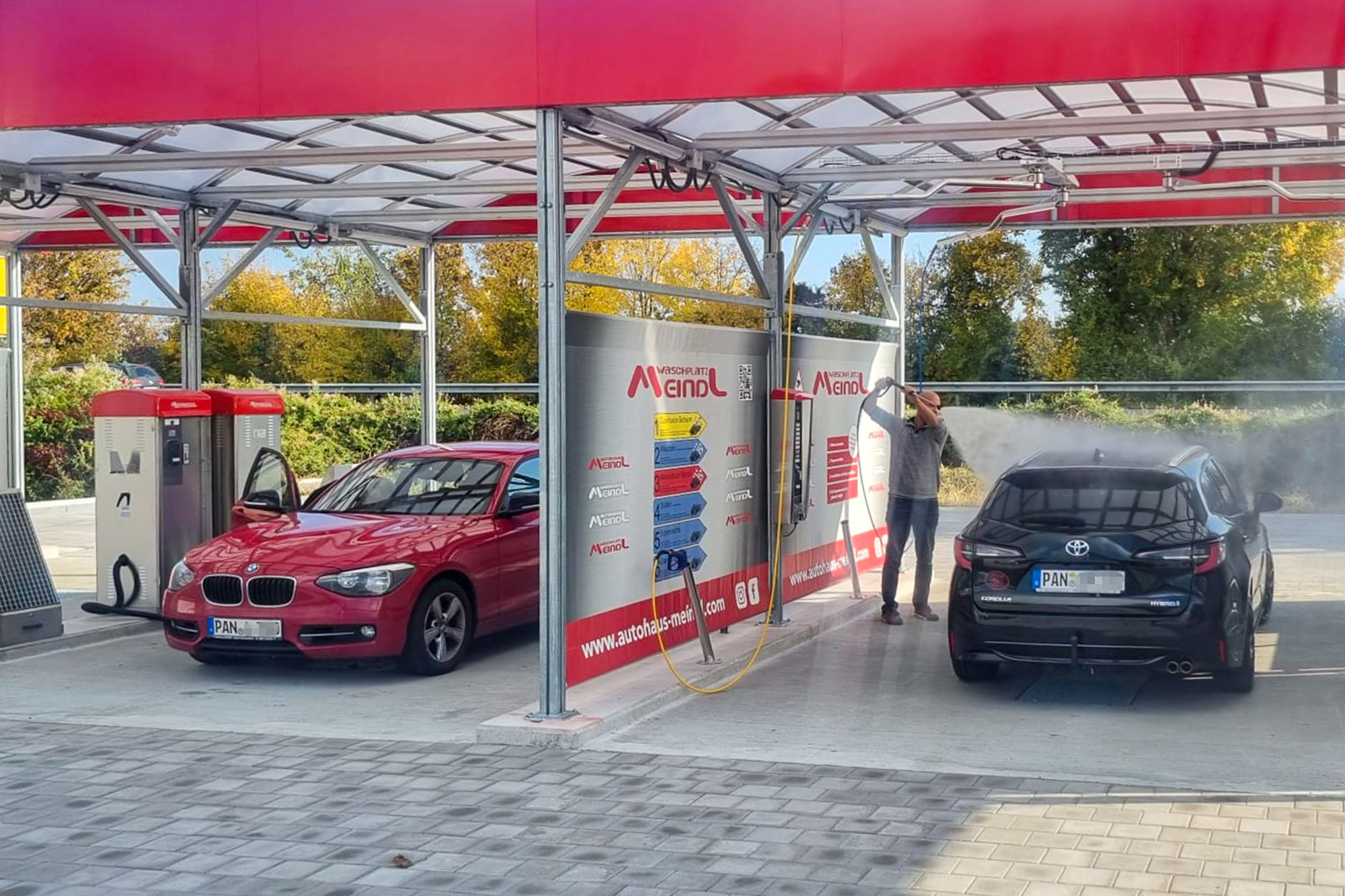 Der Meindl Waschplatz in Simbach am Inn bietet moderne Fahrzeugpflege für jedes Bedürfnis. Unsere Portalwaschanlage reinigt Ihr Auto schonend und gründlich, während SB-Waschplätze und Staubsaugerplätze eine flexible Pflege in Eigenregie ermöglichen. Mit unseren Wertkarten wird die Autowäsche besonders komfortabel und schnell.